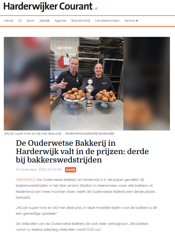 De ouderwetse Bakkerij is sinds 1839 al een begrip in Harderwijk en omstreken. Wij maken al onze producten, in tegenstelling tot de moderne bakkerijen, nog steeds op ambachtelijke wijze.